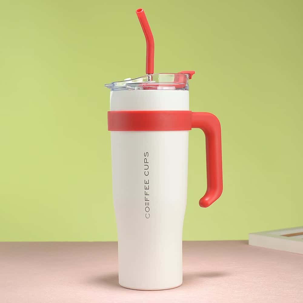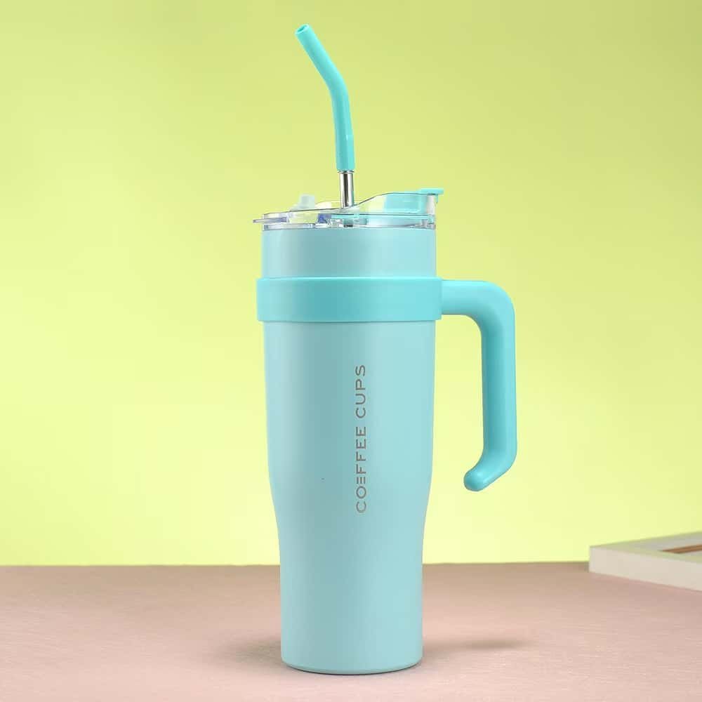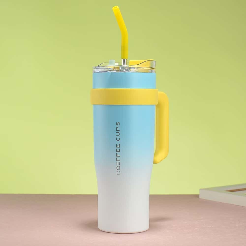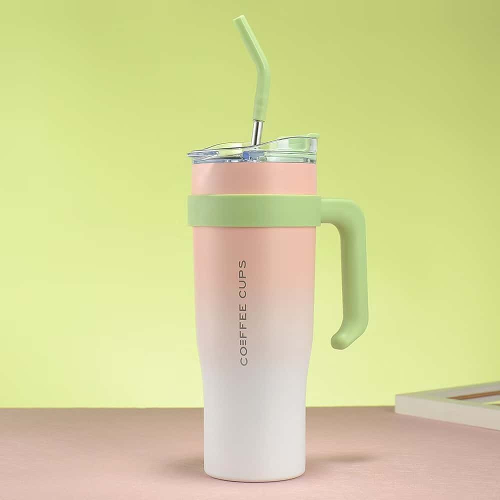 40oz stainless steel large capacity straw cup with handle