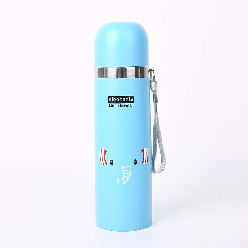 We proudly present our TI-1045 thermal flask and mug. This modern, minimalist stainless steel bottle is perfect for daily life. It features a cute cartoon design and a handy carry strap. You can easily hang it on your bag, so it saves space inside. Also, it is proudly crafted by ZHEJIANG JUPENG DRINKWARE CO.,LTD. Therefore, you get top quality and great style in one product.