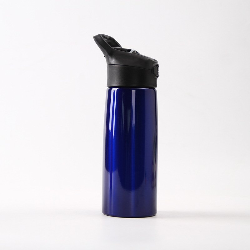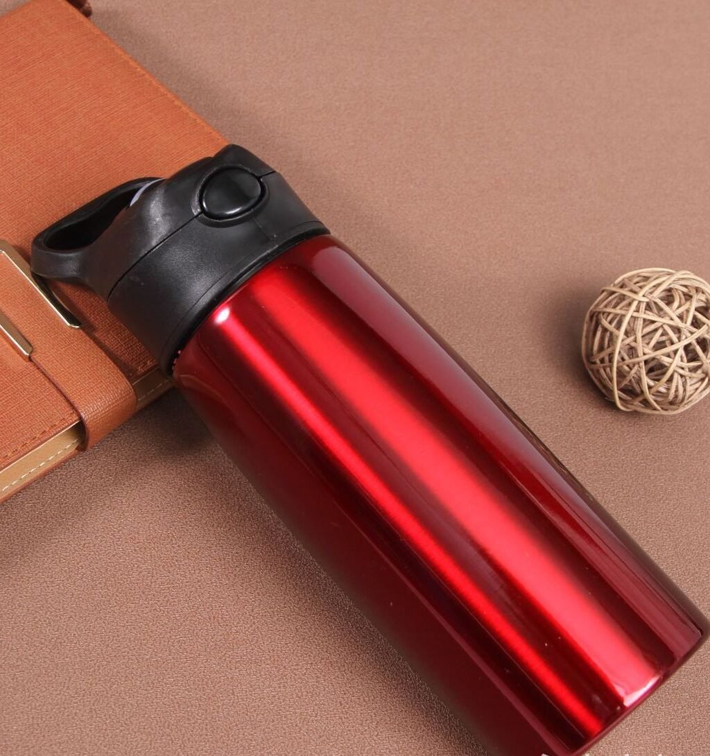 Single wall stainless steel bottleStainless steel sports kettle, available in multiple colors, all equipped with the same color flip cap cap with a climbing buckle. The design is simple and easy to carry.