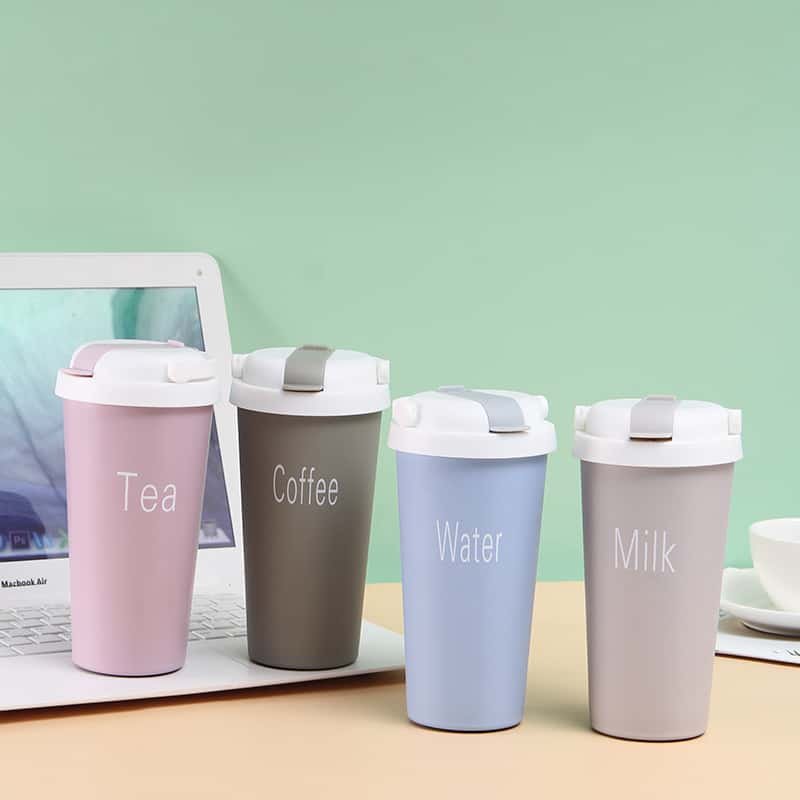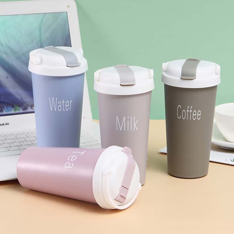 The cup body is labeled with the corresponding beverage type for easy differentiation and adaptation to different beverages such as water, milk, coffee, and tea. The flip design is easy to open and close, and can be carried for daily office and home use. It is practical and convenient, and is a good helper for daily packaging of various beverages.