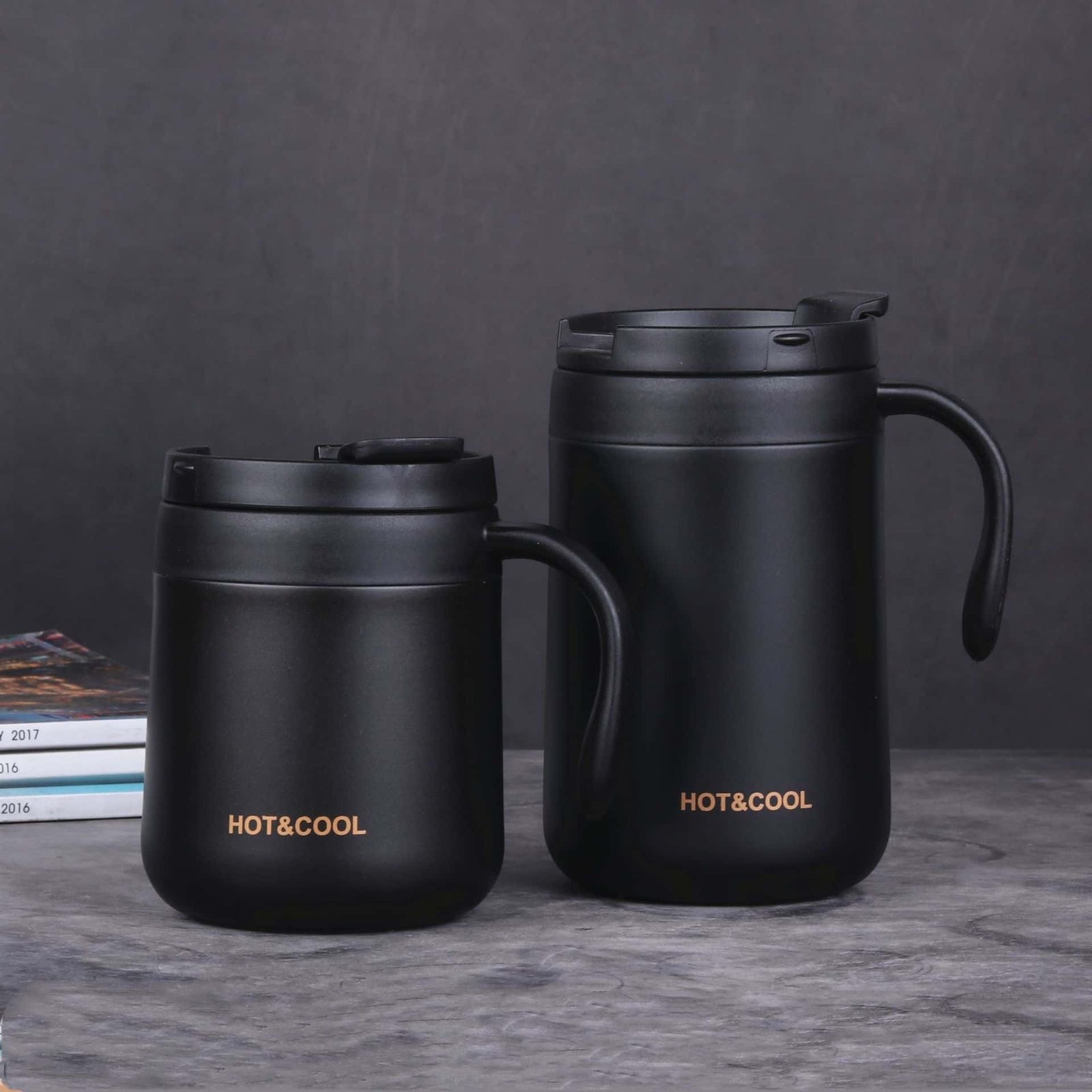Thermal flask and mugMulti specification stainless steel vacuum insulated cup, equipped with anti slip grip area, securely held and not easy to slip off. Adapting to different drinking water demand scenarios, the large capacity version is suitable for carrying outside, while the small capacity version is convenient for daily commuting. The vacuum structure can maintain the temperature of beverages for a long time and is a practical daily drinking utensil.
