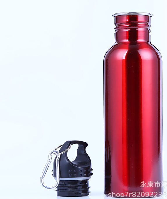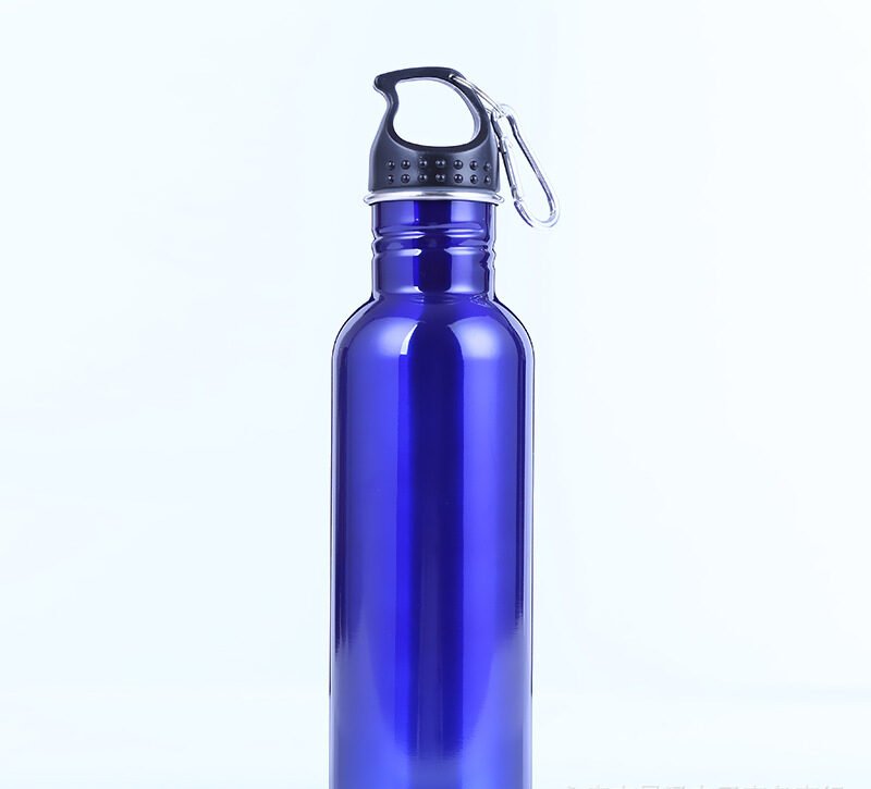 Single wall stainless steel bottleStainless steel sport bottle, with a capacity ranging from 400ML to 1000ML, comes with a black cup lid with a handle and a metal buckle. The size increases with capacity, and the design is practical and available in multiple specifications.