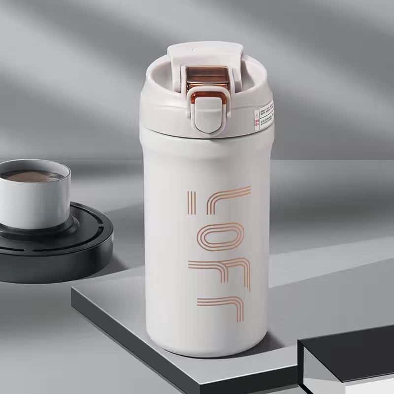 Thermal flask and mugDouble-layer vacuum insulated cup with logo design on the body, suitable for storing both cold and hot beverages. The twist lid opens and closes easily, making it portable and easy to hold. Ideal for daily commuting, office use, and gift-giving scenarios. The simple yet practical design allows for single use or boxed gifting, making it a versatile tool for everyday drinking.